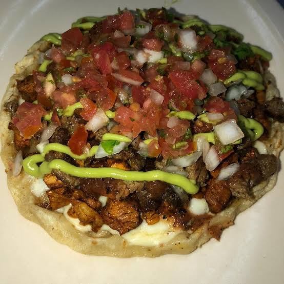Sope mediano con queso carne asada de res y sus salsas aparte