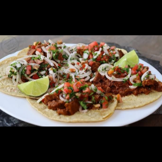 Orden de 5 tacos con carne adobada y sus deliciosas salsas y guacamole aparte