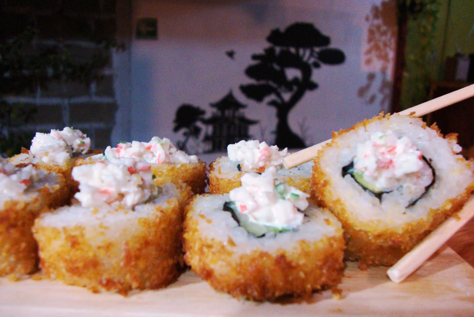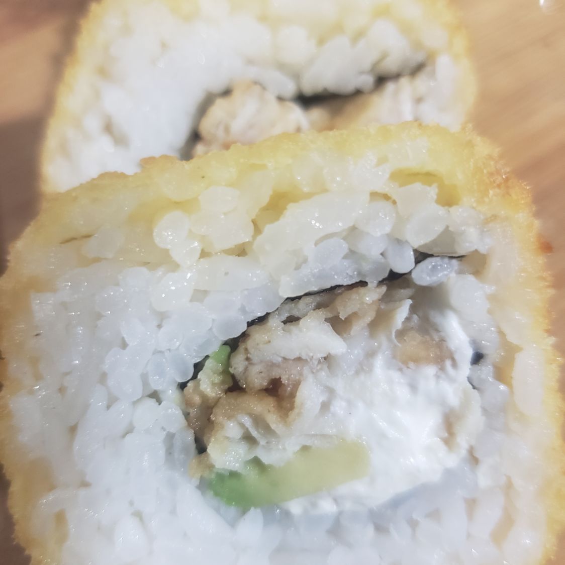 Philadelphia, aguacate, pechuga de pollo empanizada.