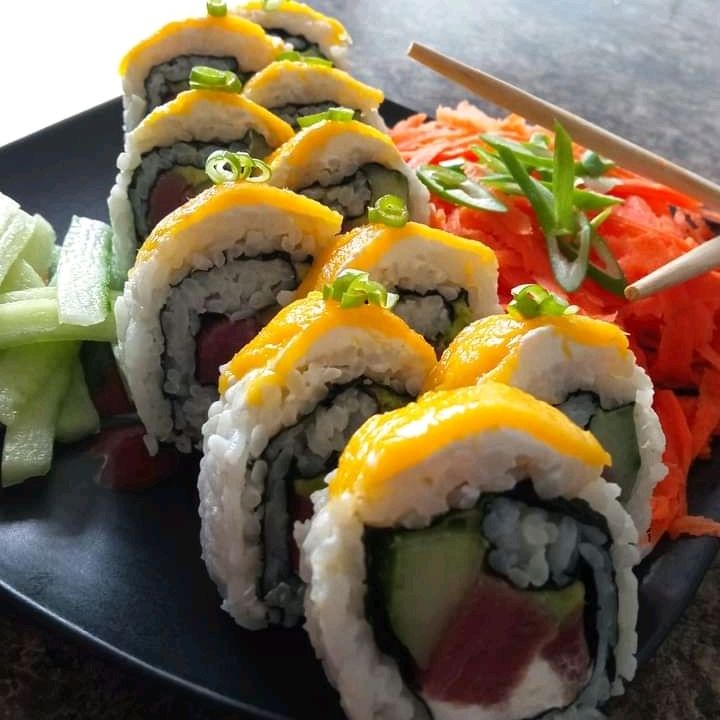 Contiene philadelphia, pepino, atun, aguacate, y forrado de atún.