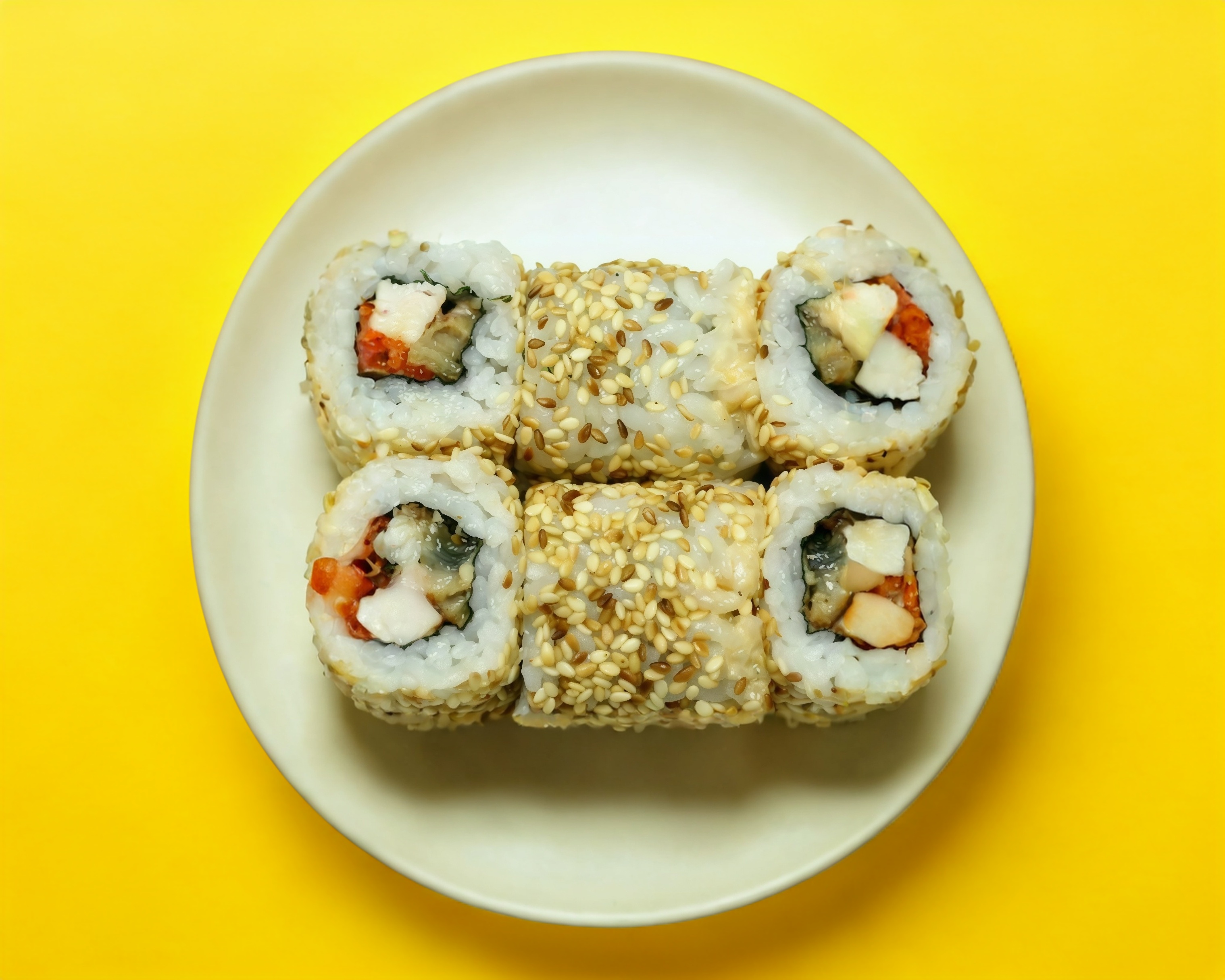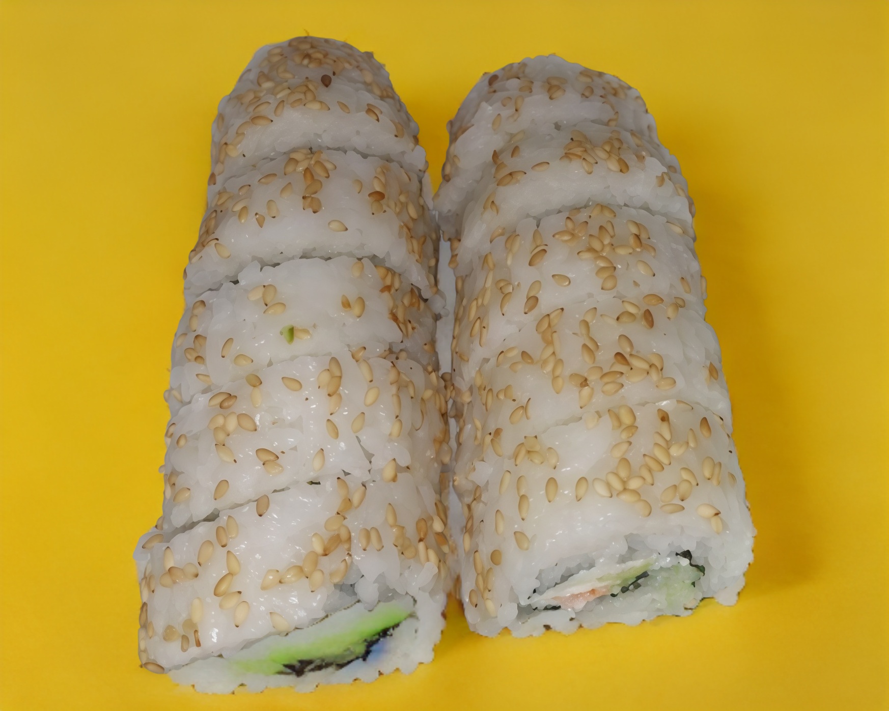 Aguacate, surimi y philadelphia cubierto con ajonjolí.