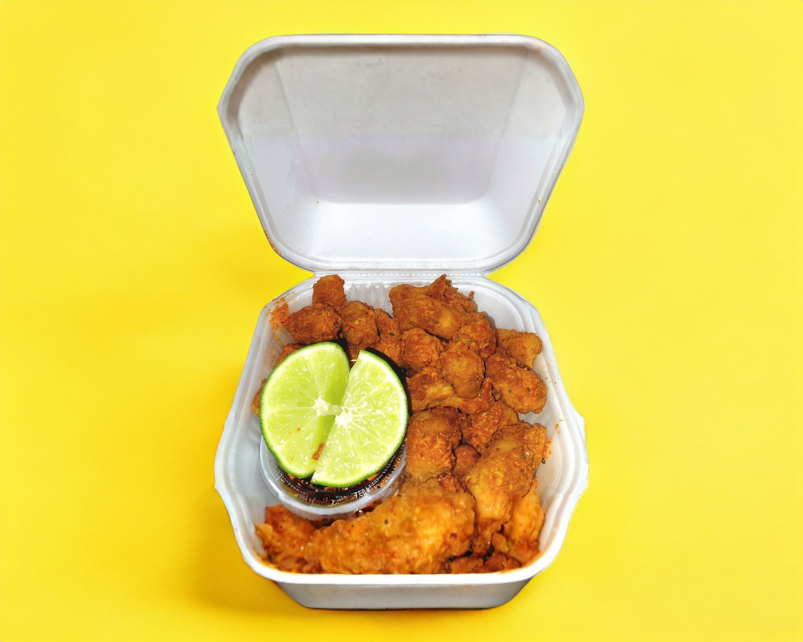 Orden de 300 g de calamar, salseado con soya y chilito japonés.