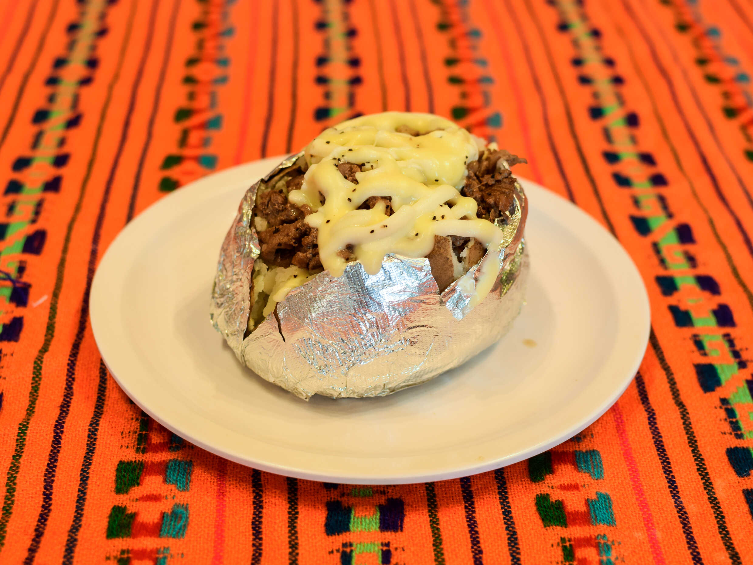 Incluye papa asada, aguacate en abanico, 1/2 salchicha asada, 1 chile toreado, tortillas y frijolitos charros.