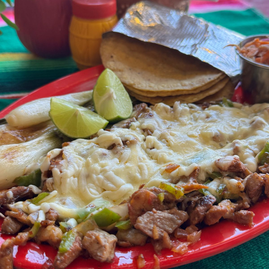 Todos los braseros familiares incluyen 4 papas o 4 frijoles charros, tortillas, salsas y 750gr de la carne de su elección. Combinación 50% pastor 50% bisteck, queso chile morron, cebolla.
