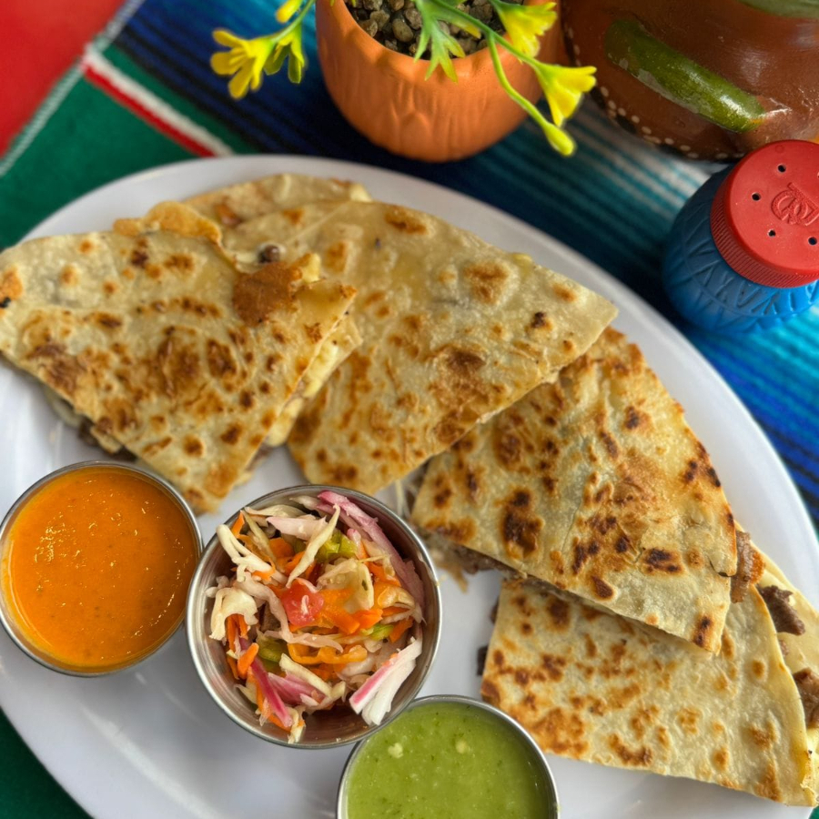 Quesadilla de tortilla de harina grande con el ingrediente que mas te guste.