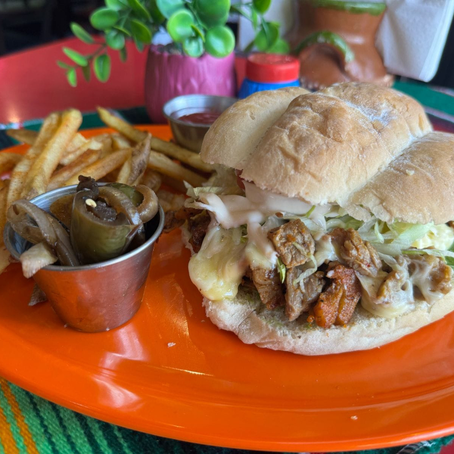Todas las tortas incluyen, mayonesa, lechuga, tomate, aguacate, chilitos toreados y sus papas fritas. La torta lleva choriquezo, pastor, bistec, salchicha para asar, jamon y queso.