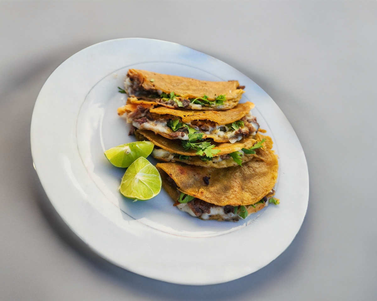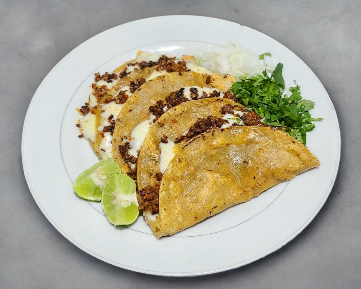 Tortillas de maíz rellenas de queso derretido y jugoso bistec asado. Orden de 4.