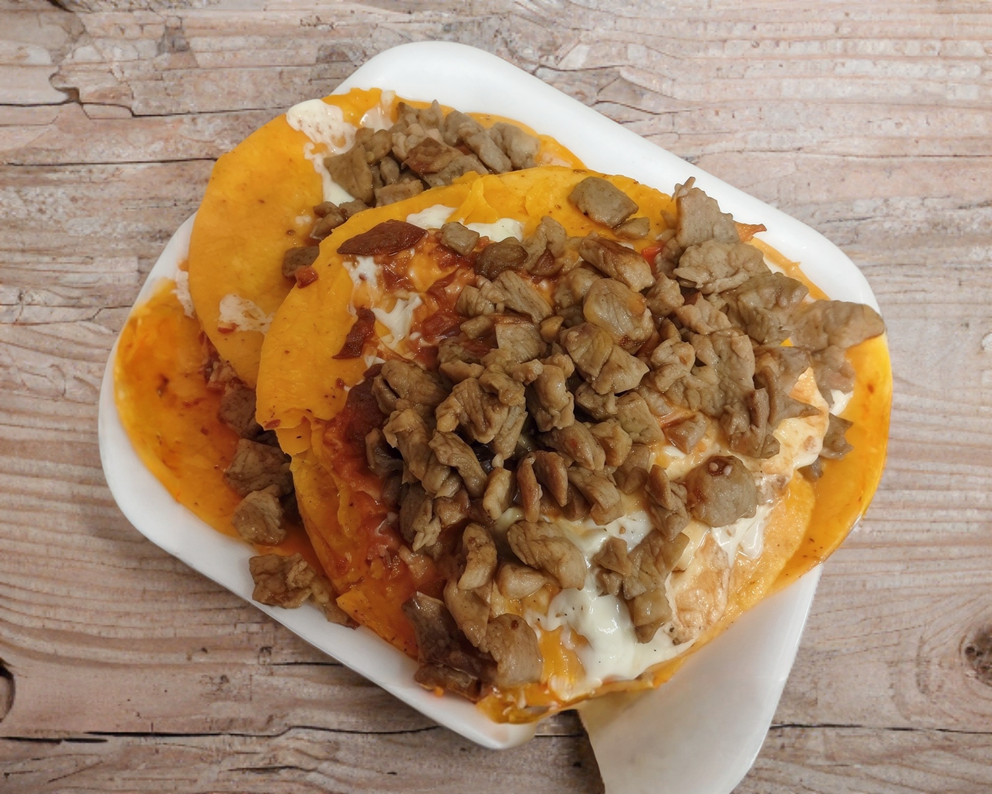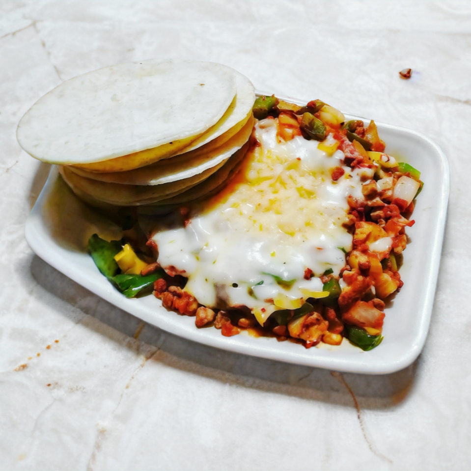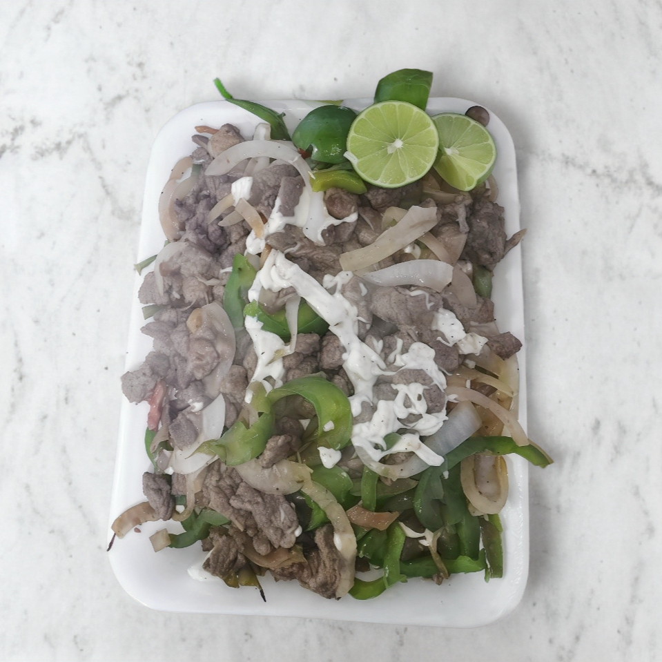 Morrón cebolla quesillo carne de bistec 13 tortillas