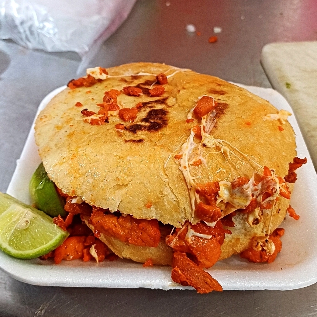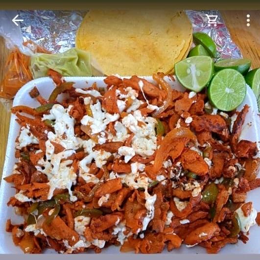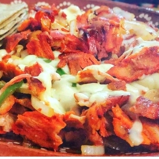 Pastor/bistec/ morrón/cebolla/queso todo revuelto/ incluye tortilla salsa limón etc
