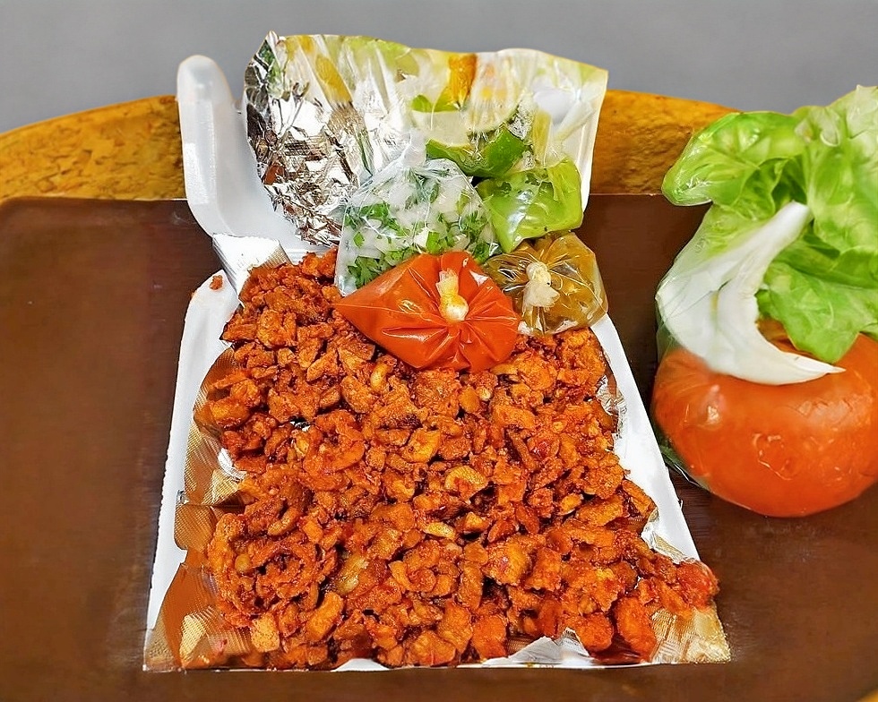 5 tacos carne al pastor,salsa roja,guacamole,pico de gallo y cebollitas