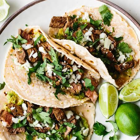 Medio kilo de asada cebolla salsa limones y tortillas