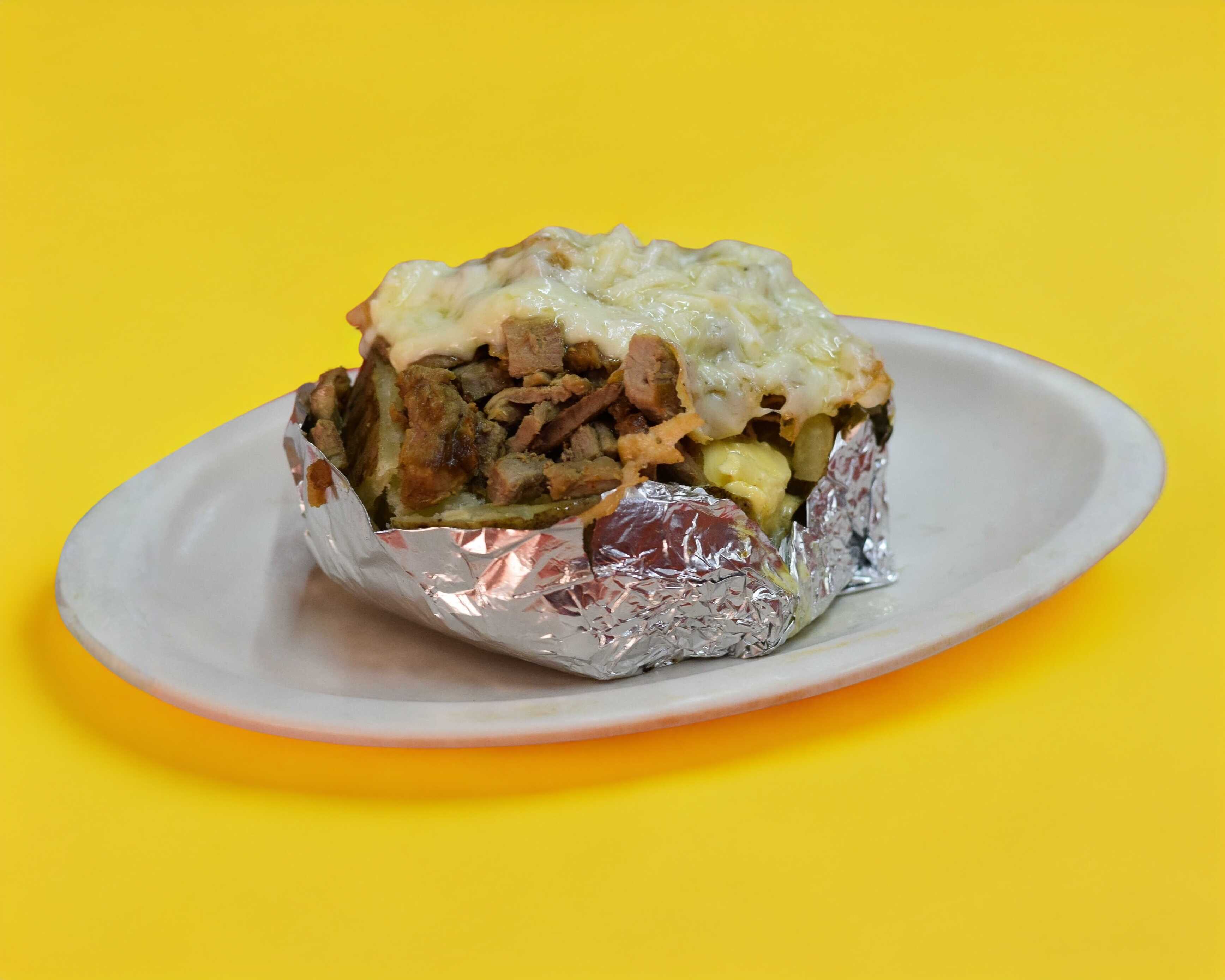 Papa con Pastor: mantequilla y carne al pastor
