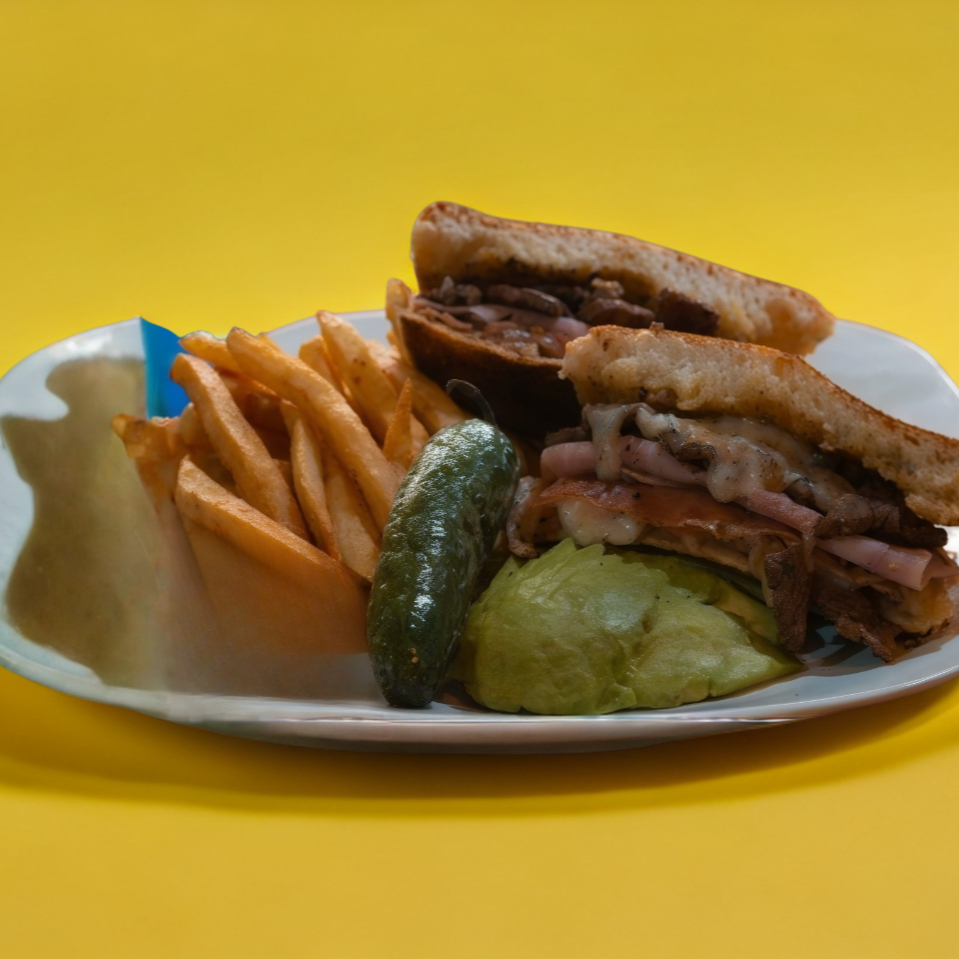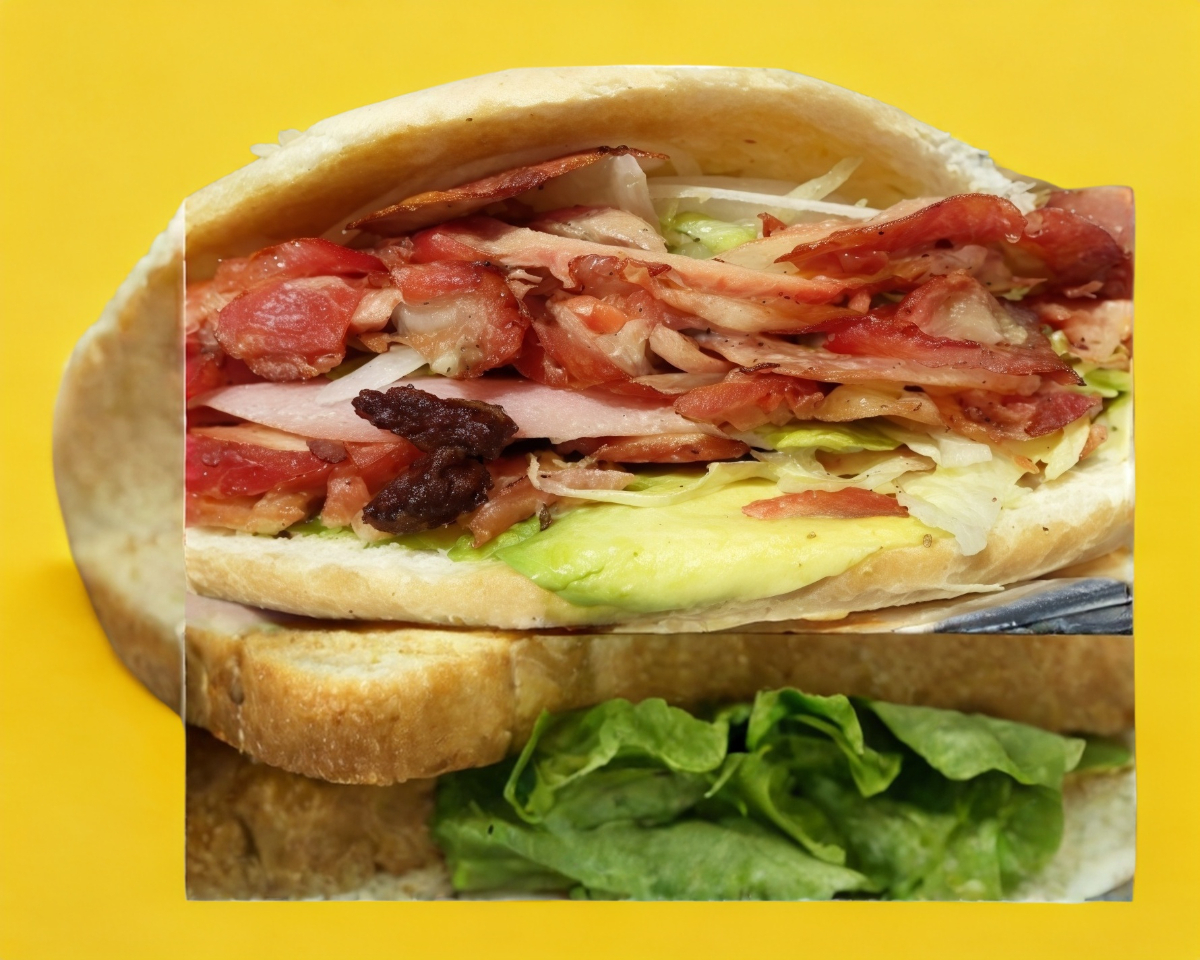 Deliciosa torta de jamón con queso. Agrégale bistec, pierna o colita de pavo. Con lechuga, tomate y aguacate.