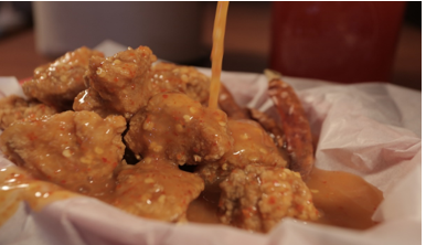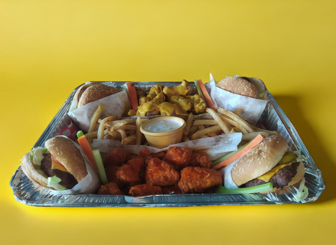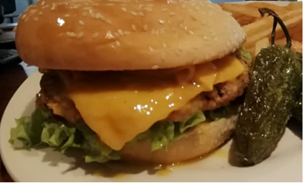 Deliciosa hamburguesa de pollo empanizado, bañada en salsa búfalo.