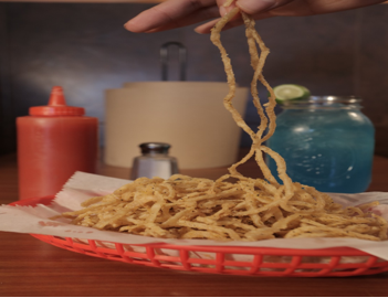 200 gr. de cebolla cortada en espiral, empanizada y sazonada con el condimento especial de casa.