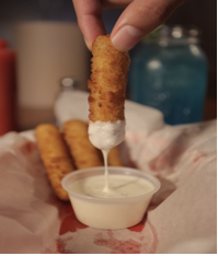4 Crujientes dedos de queso acompañados de un aderezo ranch.