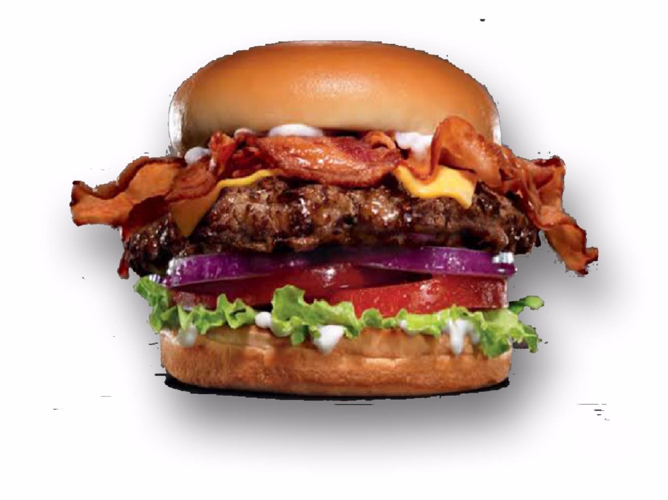 HAMBURGUESA HECHA CON CARNE TOP SIRLOIN Y CRUJIENTE TOCINO, QUESO AMERICANO, LECHUGA ROMANA, CEBOLLA MORADA, TOMATE, PEPINILLOS, CATSUP, MAYONESA, MOSTAZA Y PAN SIN AJONJOLI