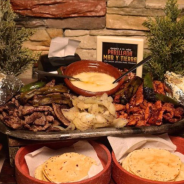 INCLUTE 5 PAPAS CON MANTEQUILLA, QUESO FUNDIDO, CEBOLLAS ASADAS 3 TIPOS DE SALSAS, CHILES CALIFORNEA Y TORTILLAS