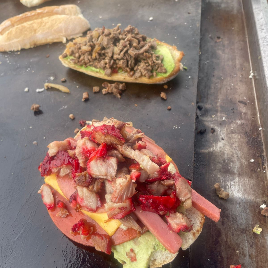 ambas carnes, jamon, queso Amarillo y Blanco, salchicha, winnie, lechuga, tomate, aguacate, liquidos