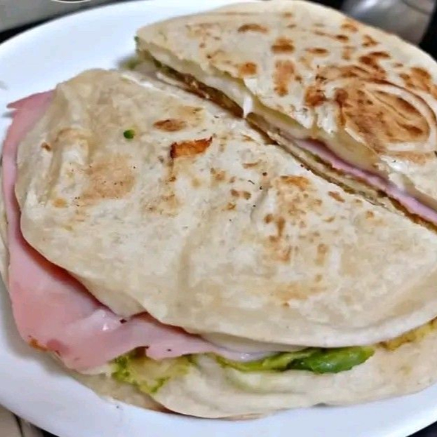 Tortilla, harina, jamón, queso menonita, aguacate