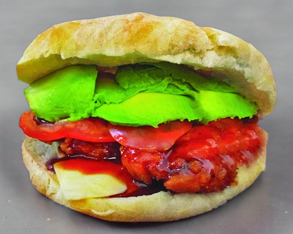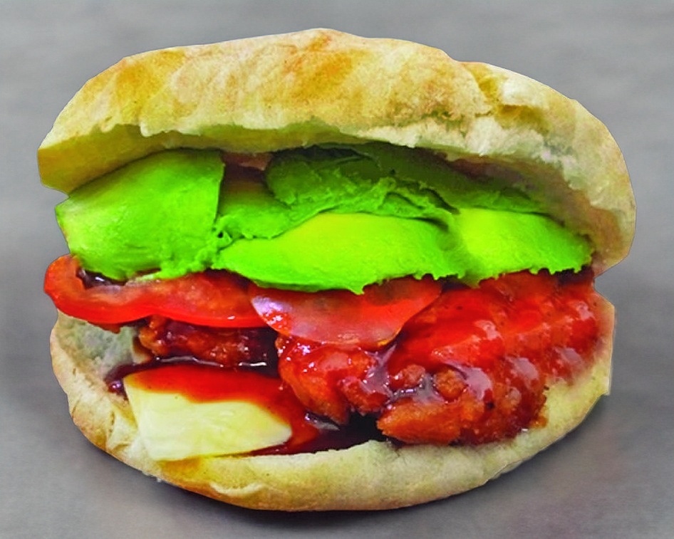 Pechuga de pollo bañada en salsa BBQ, queso, aguacate, tomate chile y mayonesa.