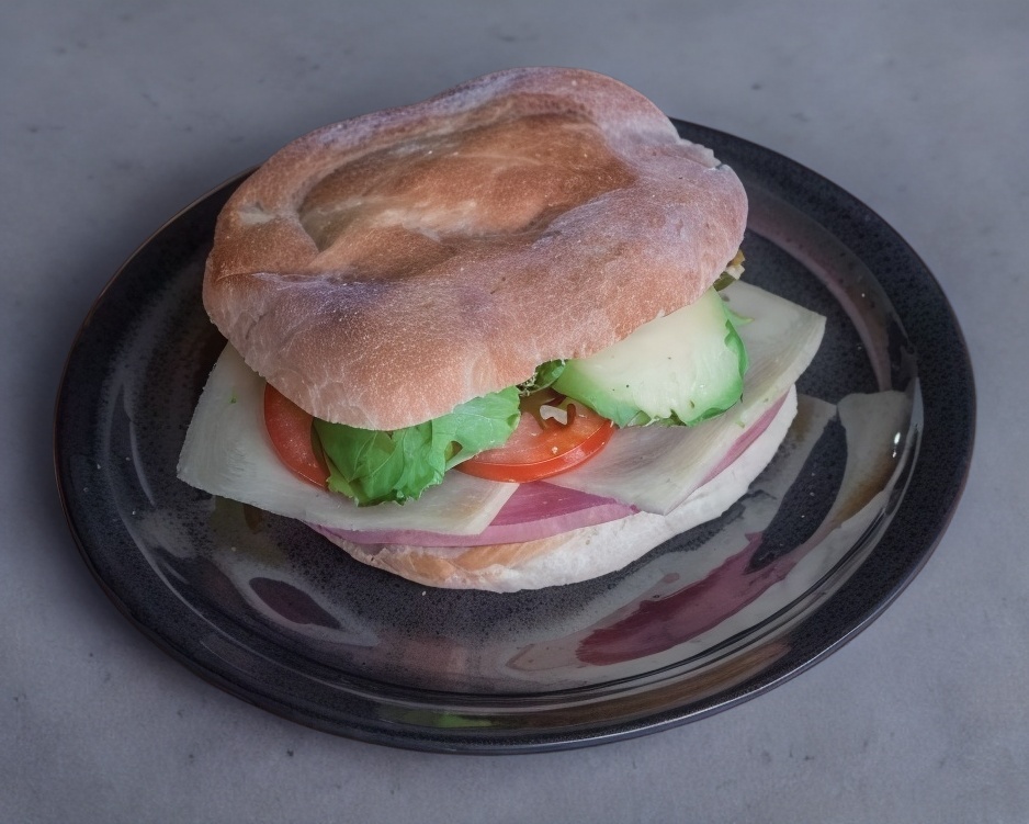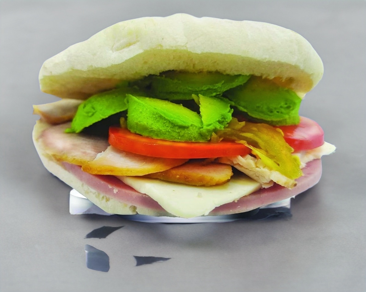 Jamón, queso, aguacate, tomate, chile y mayonesa.