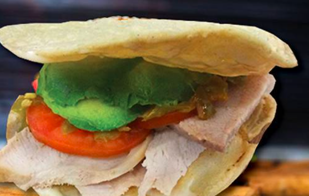 Deliciosa torta de aguacate elaborada con pan recien hecho, abundante aguacate, tomate, chile y un toque de mayonesa.