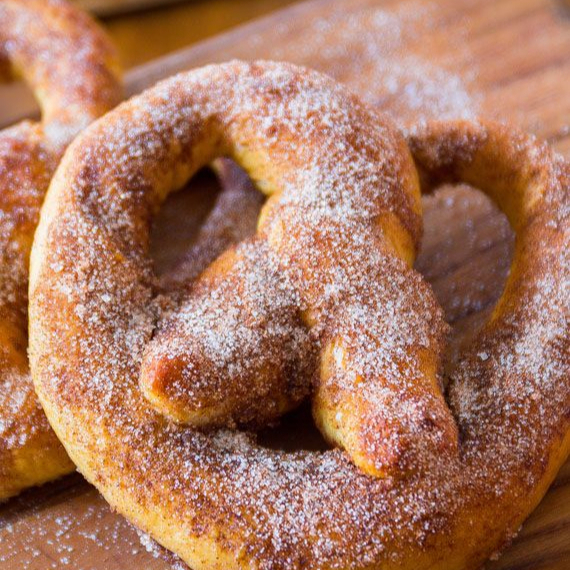 pretzel gigante espolvoreado de Azucar y Canela