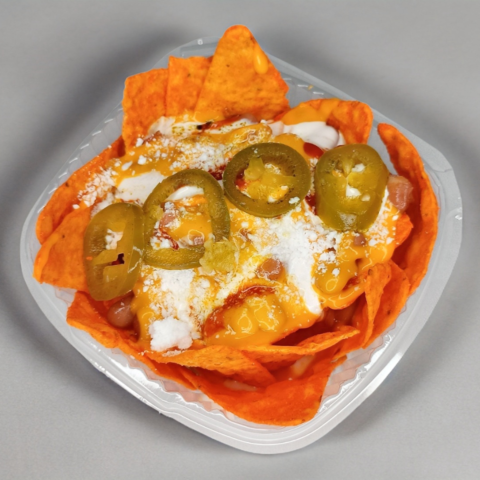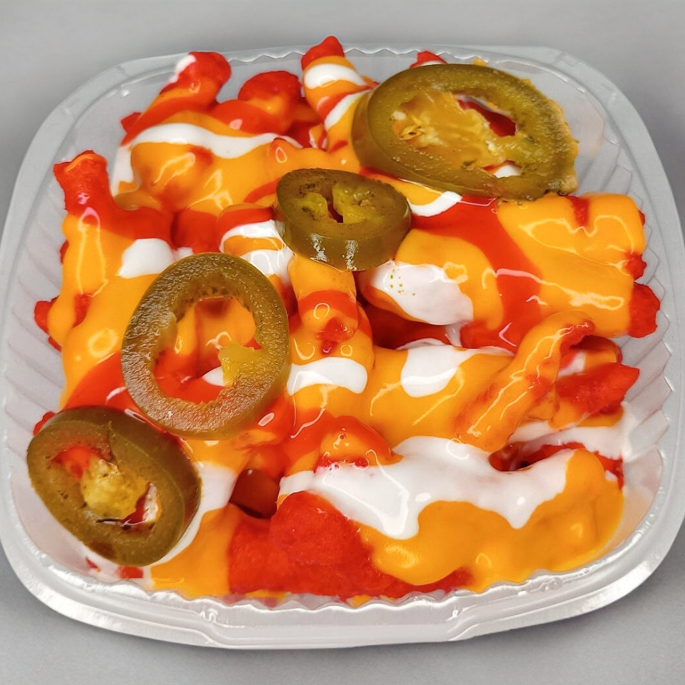 2 chetos flaming, queso amarillo, crema, curtidos, salsa a elegir