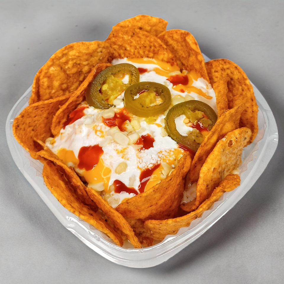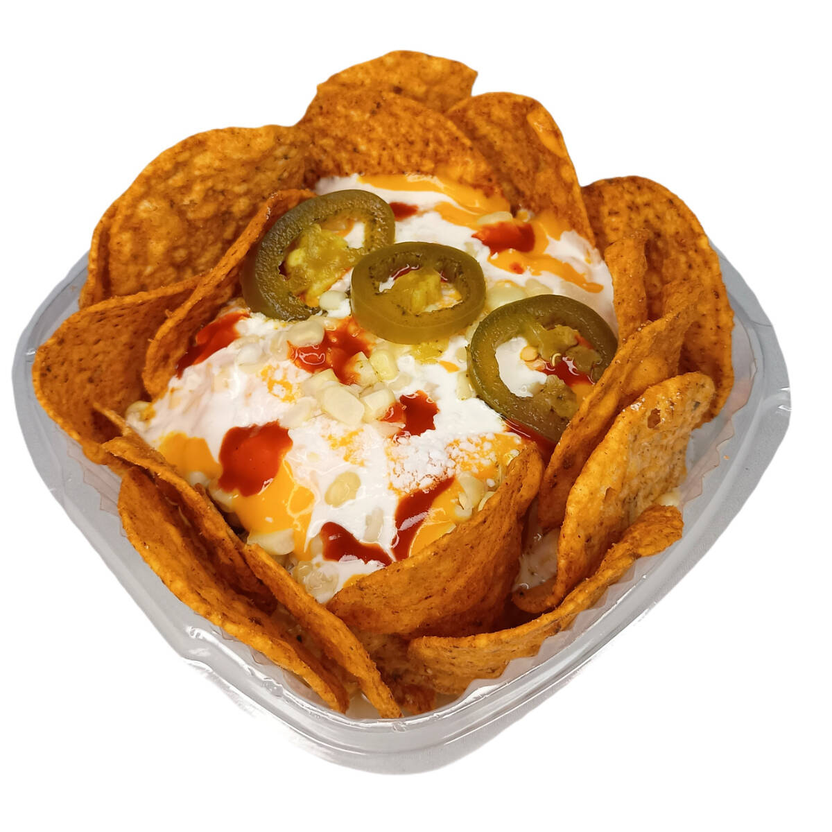 Queso amarillo, queso blanco, curtidos, crema, salsa a gusto, papitas a eligir