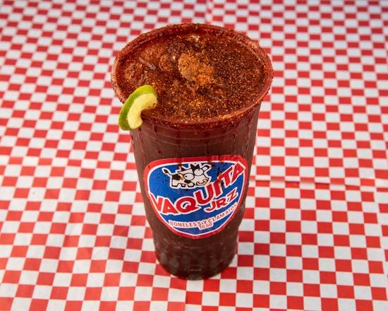Vaso colorino escarchado con chamoy, tajín preparado con limón, sal, pimenta ,salsa tabasco, valentina y clamato listo para agregarle tu bebida favorita.