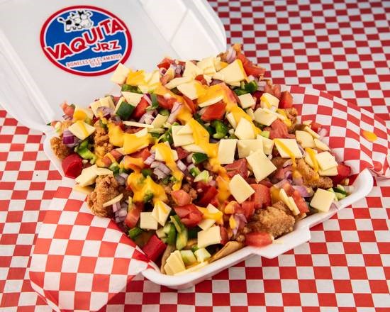 Papas a la francesa bañadas en salsa a elección y queso amarillo.