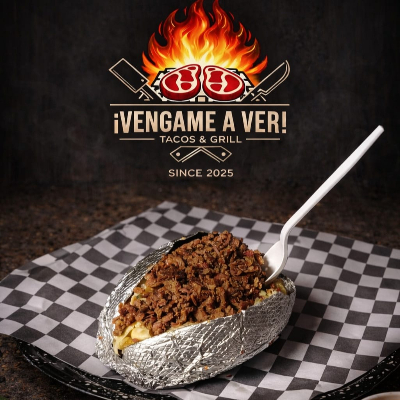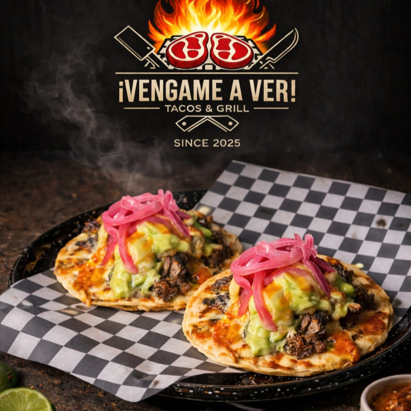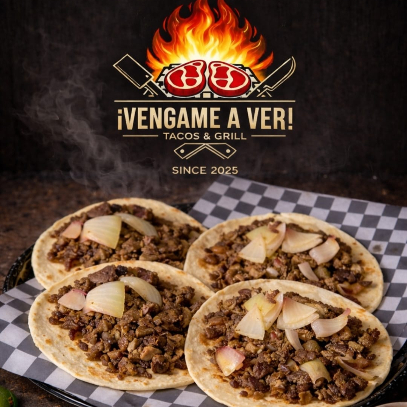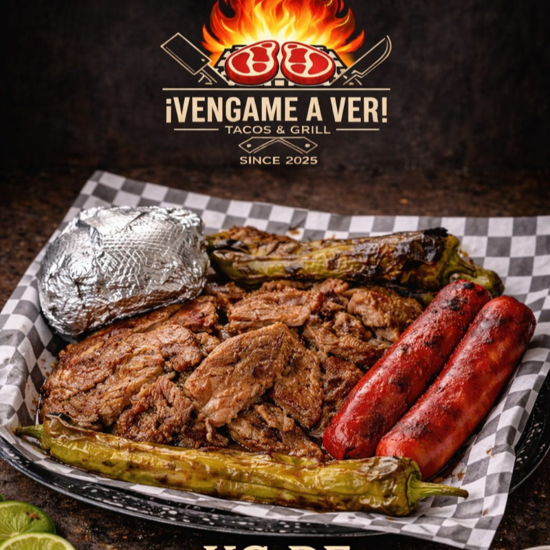 1 Kg de carne asada, cebolla, salchicha, chile california, salsas y tortillas