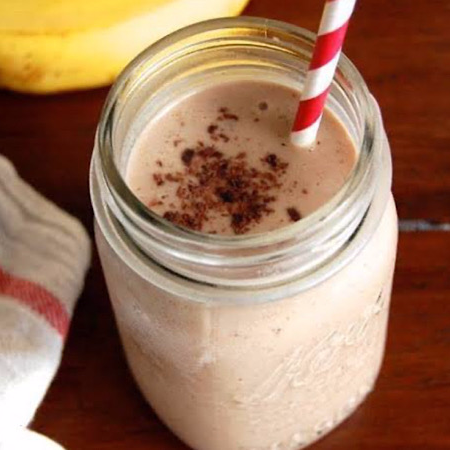 1 licuado preparado con jarabe Chocolate Hershey's, plátano y leche entera. Servido en vaso desechable 16 oz.