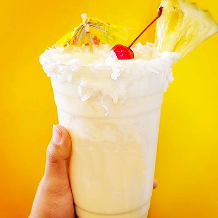 1 deliciosa y refrescante Piña Colada cremosa, servida con hielos en vaso desechable