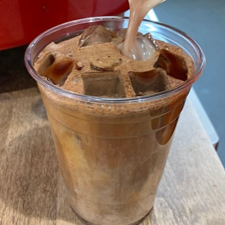 1 Refrescante Cappuccino frio, preparado con leche y hielos. Servido en vaso desechable 16 oz.