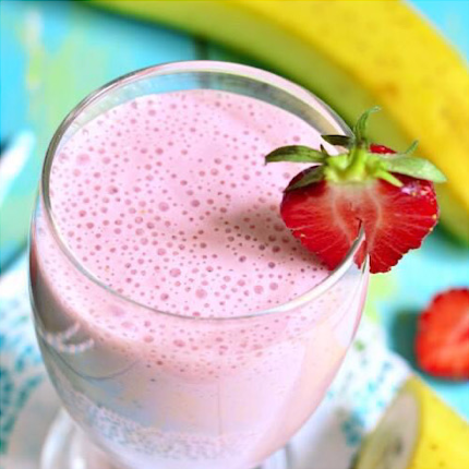 1 Licuado preparado con fresas, plátano, azucar y Leche entera. Servido en vaso 16 oz.