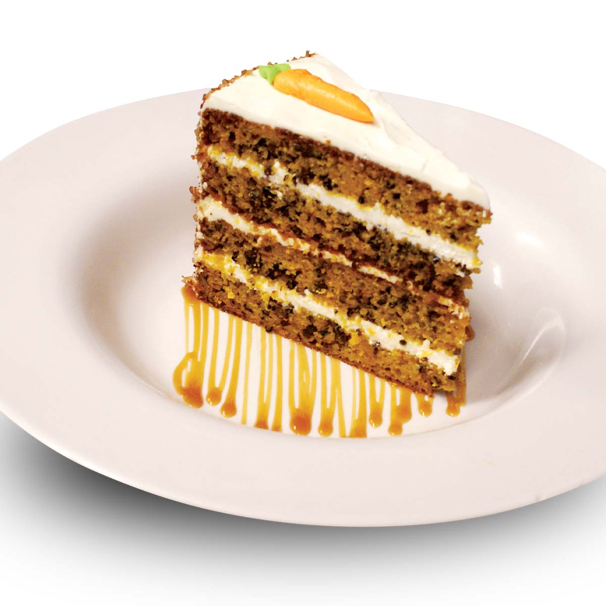 Pastel de zanahoria con cubierta de betún de queso crema.