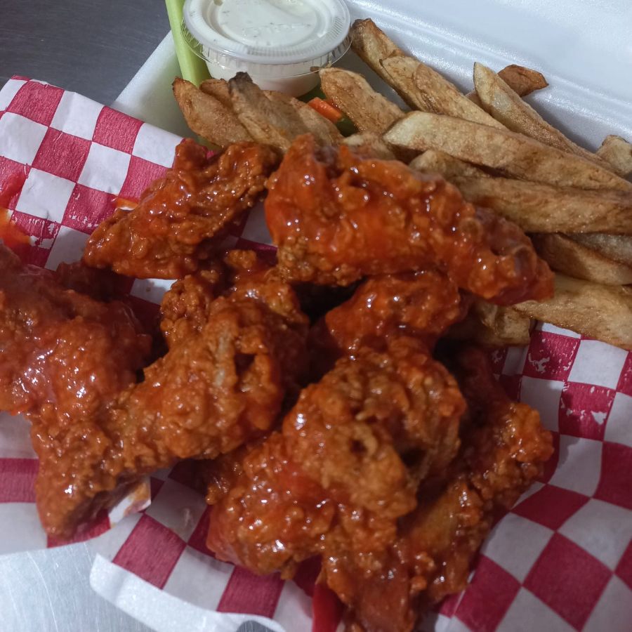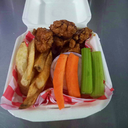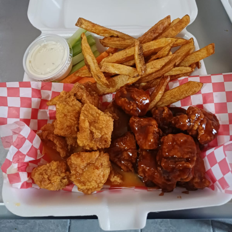 100 GRAMOS DE BONELESS EN CUALQUIERA DE NUESTRAS SALSAS, PAPAS FRITAS, VERDURAS Y SU RANCH