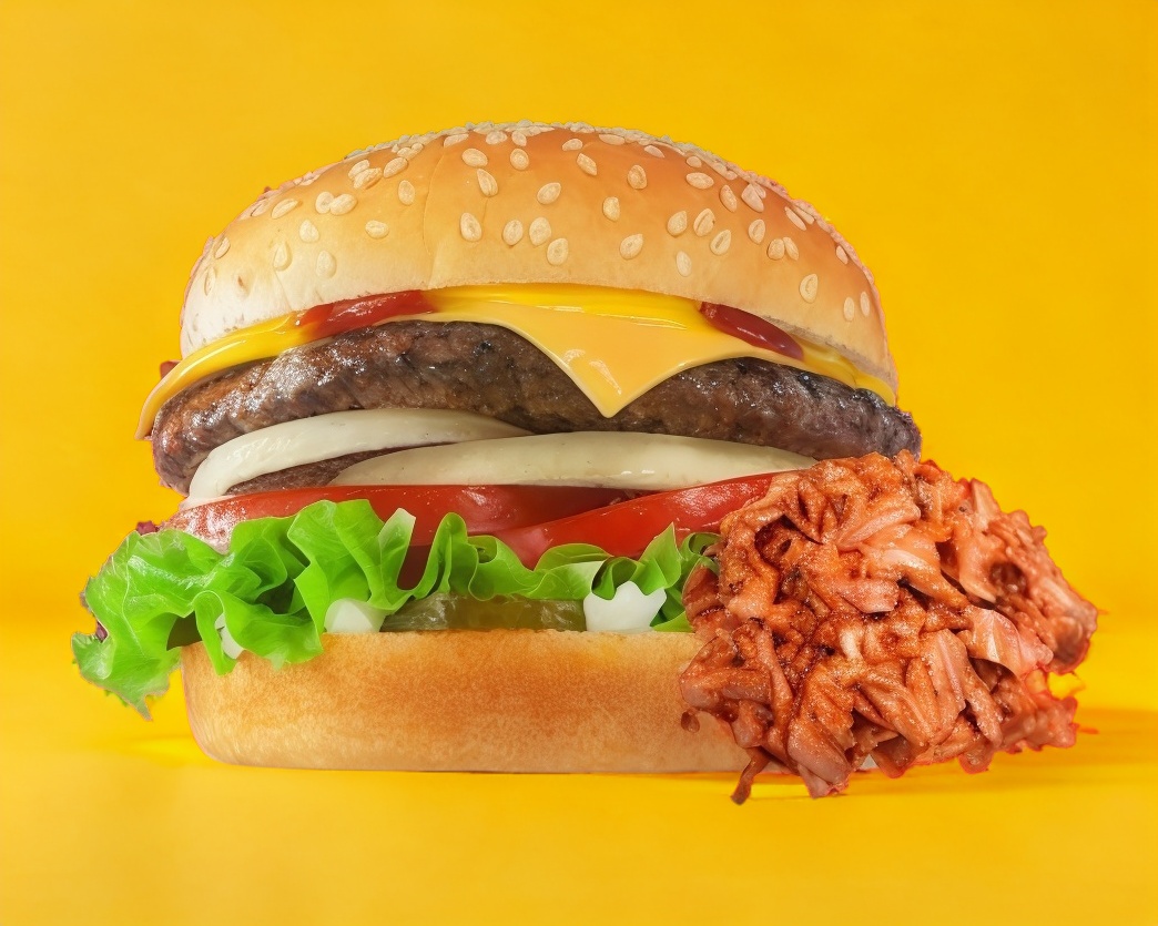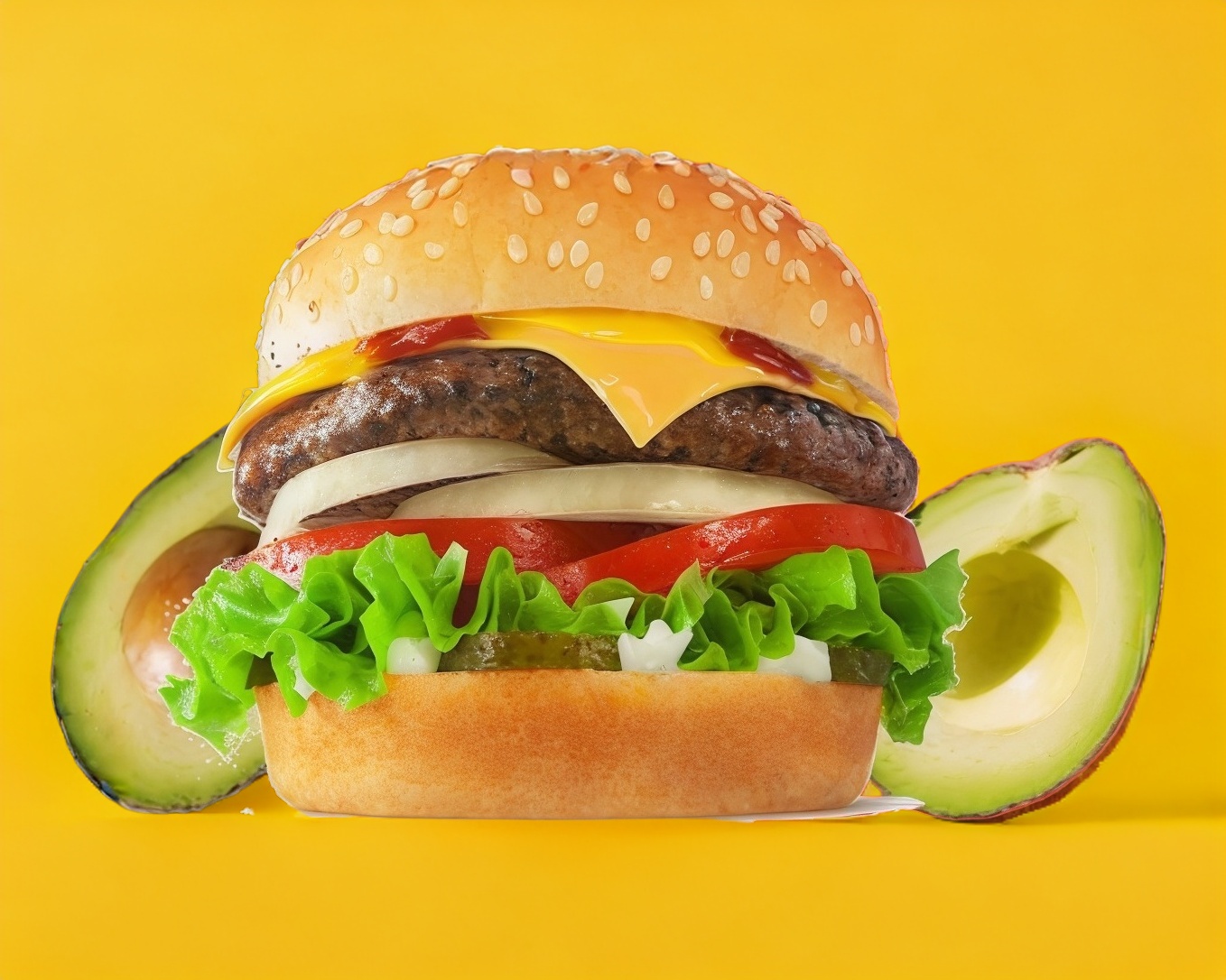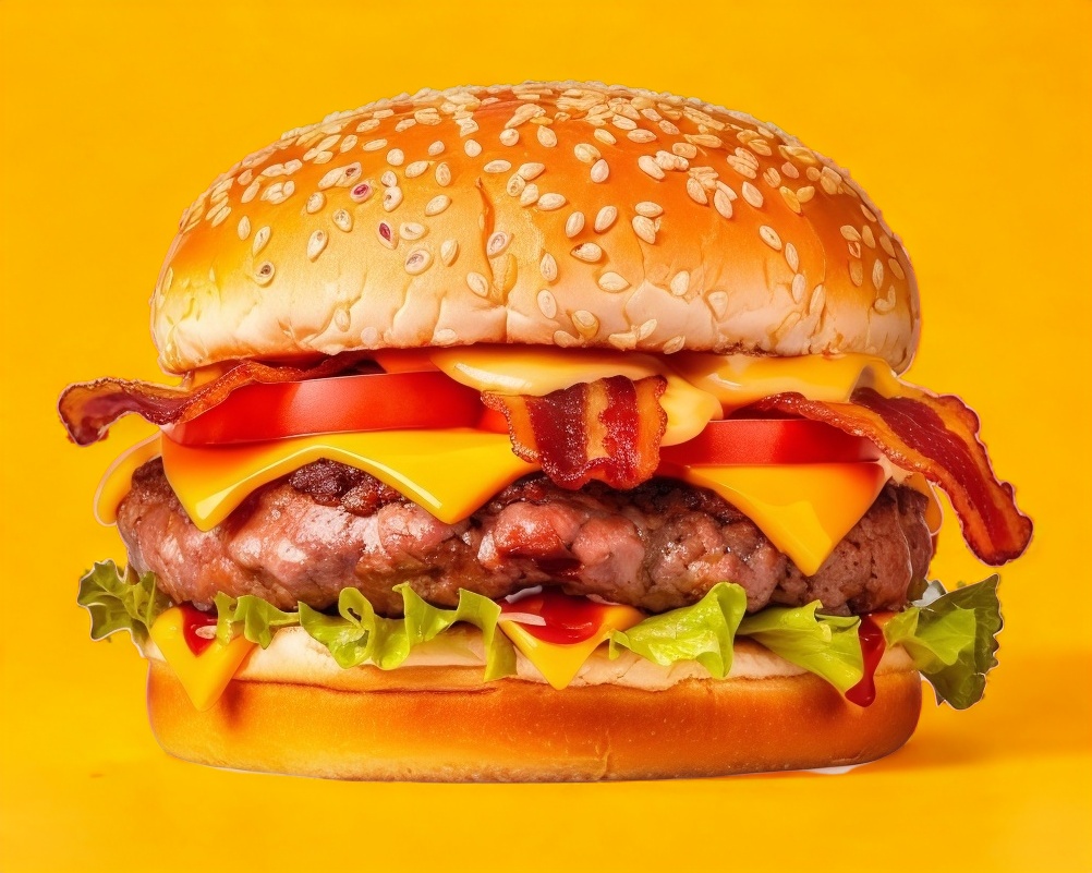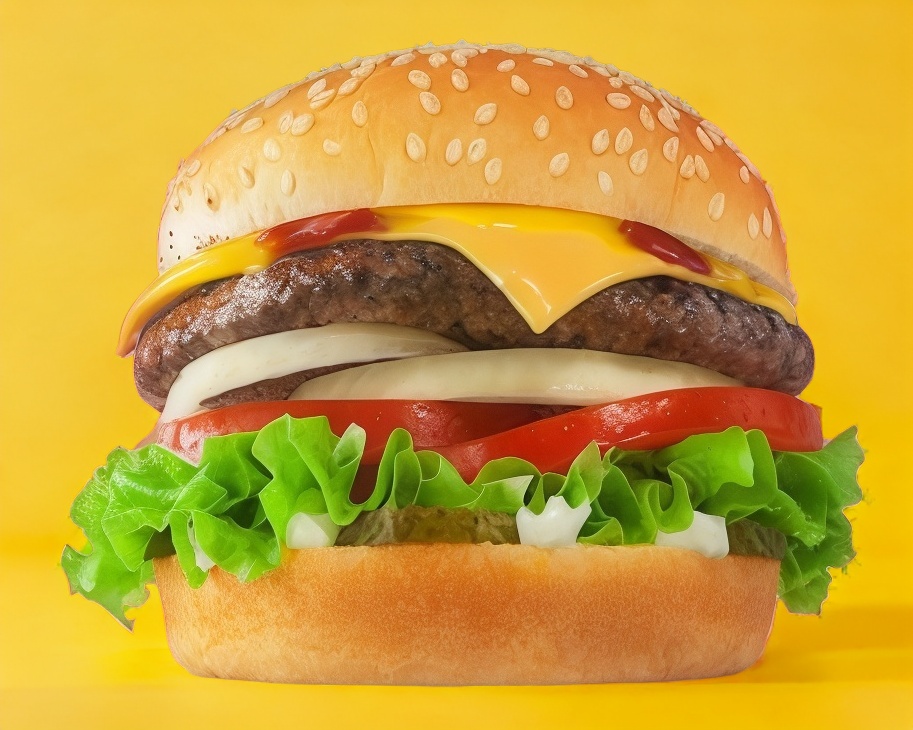 Doble carne, queso amarillo, tomate,cebolla asada, pepinillos,lechuga,mostaza,catsup y mayonesa