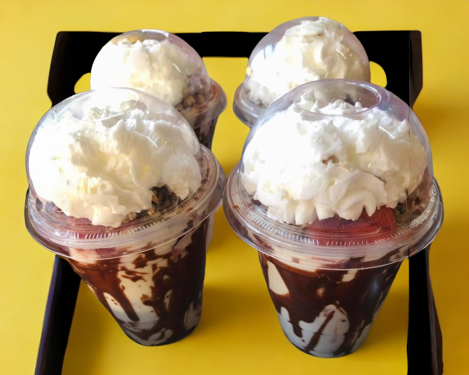 Deliciosas fresas congeladas, chocolate, ingrediente a tu eleccion y espuma