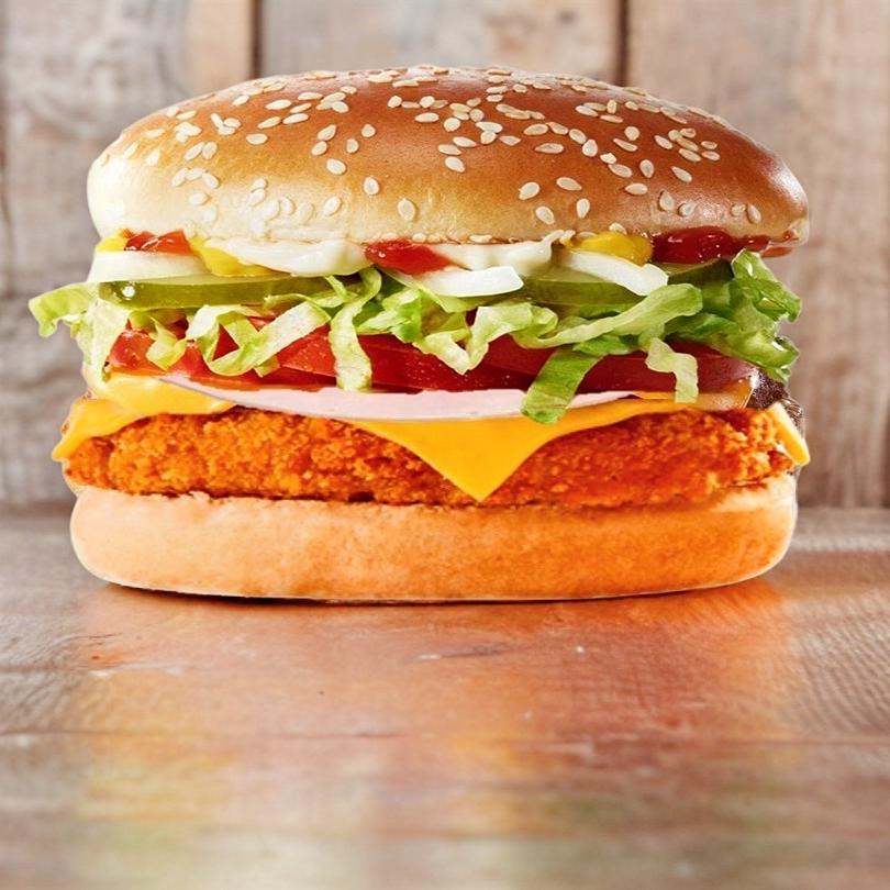 Pan, hamburguesa de nuggets pollo empanizado, queso americano, winnie, jamón, salsa a tu gusto, líquidos (mayonesa, mostaza, cátsup), vegetales (lechuga, tomate, cebolla) chile toreado.
