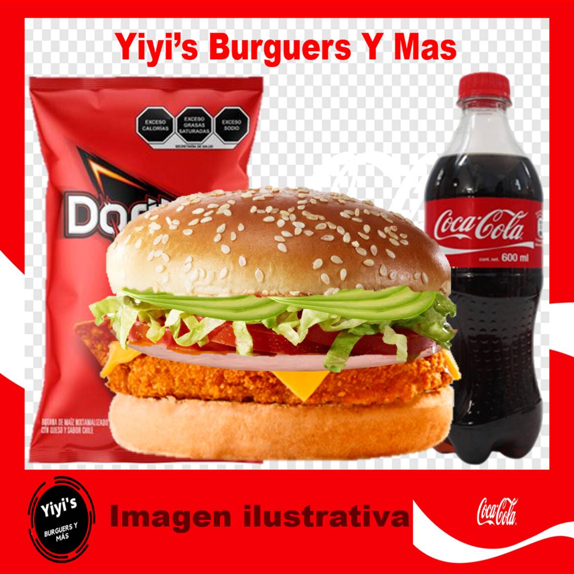 Yiyi´s Burguers Personalizada*1 + Botana a Escoger...*1 + ELIGE TU REFRESCO DE 600 ML /*1