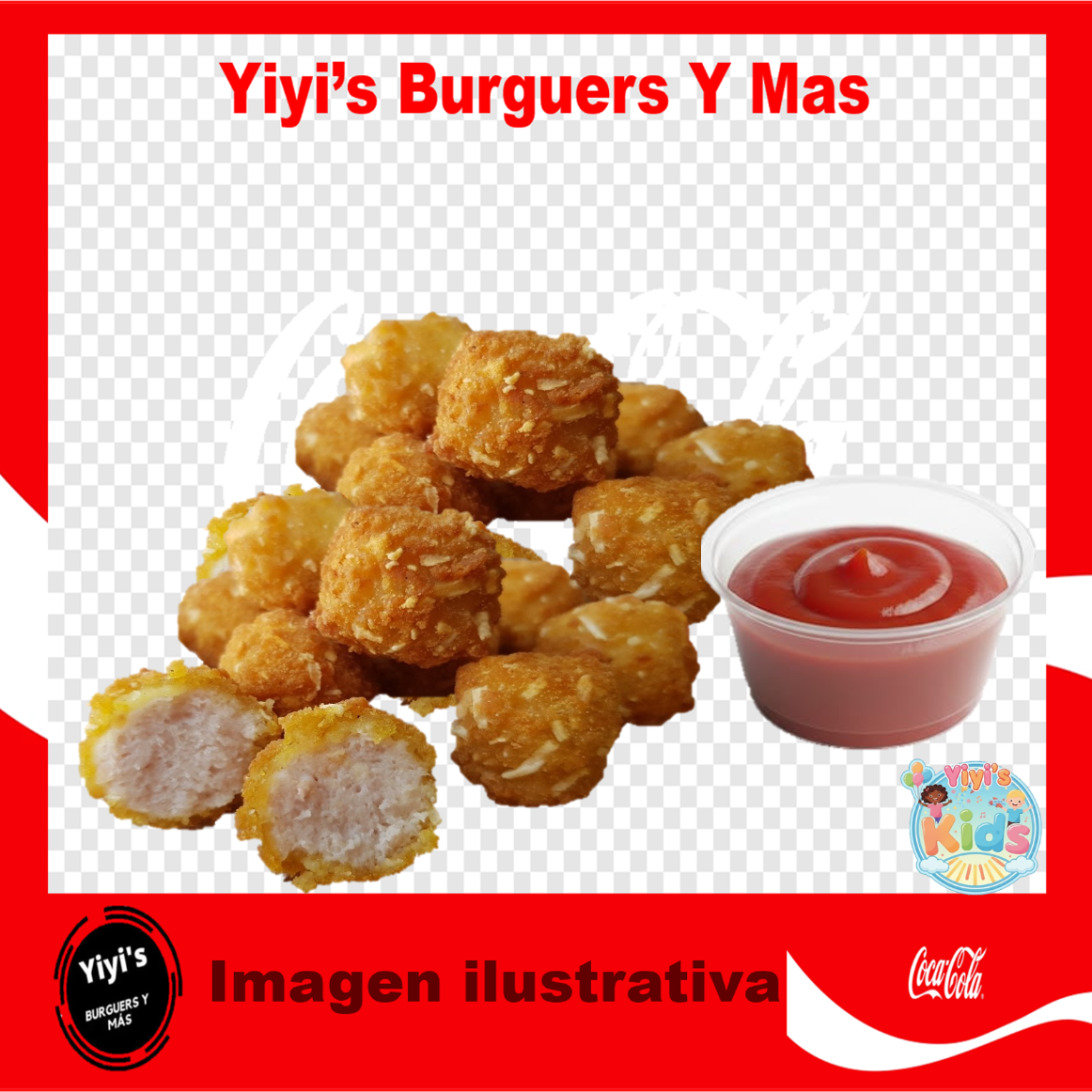 6 pzs. de nuggets de pollo, catsup