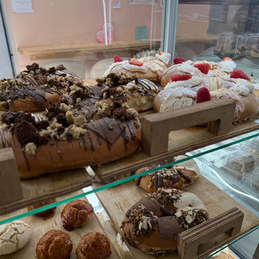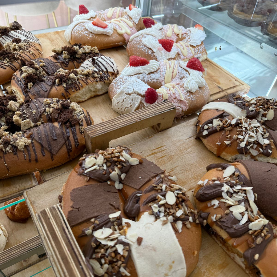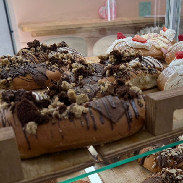 Pan Hojaldrado relleno de crema de chocolate blanco con coco cremoso.