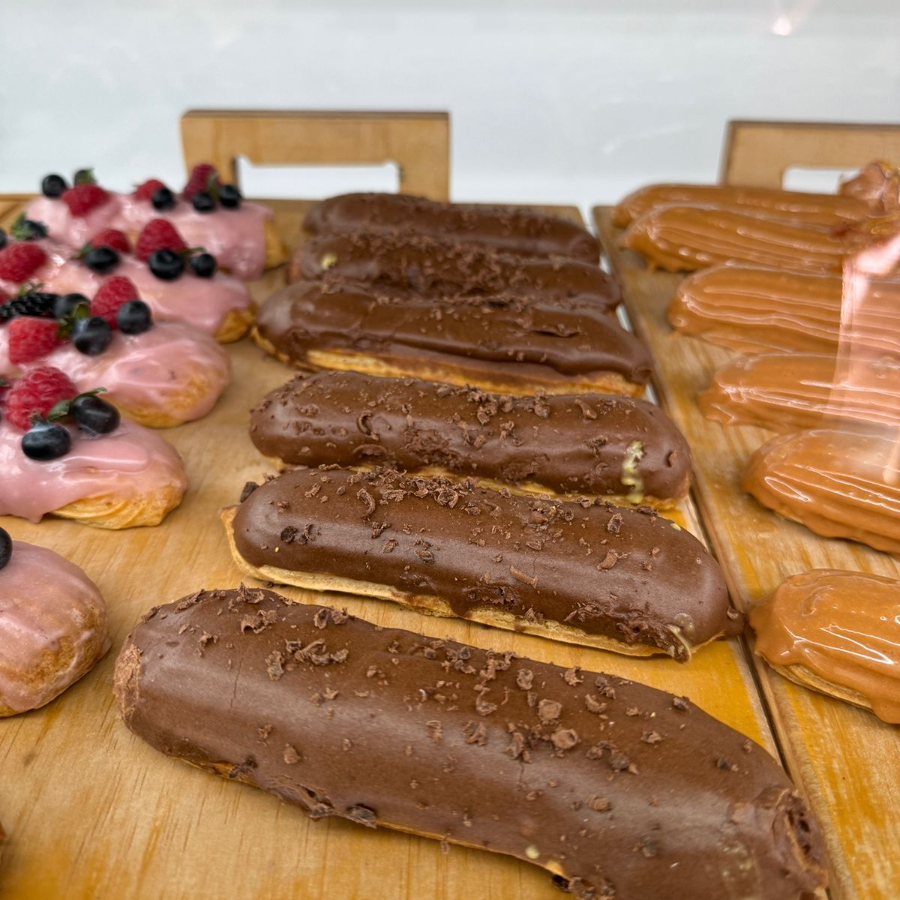 Caja con 6 piezas variadas ya seleccionadas de la vitrina de pan del dia anterior. Pueden venir piezas como: Croissants, Roles de Canela, Panques, Eclairs, New York Rolls.