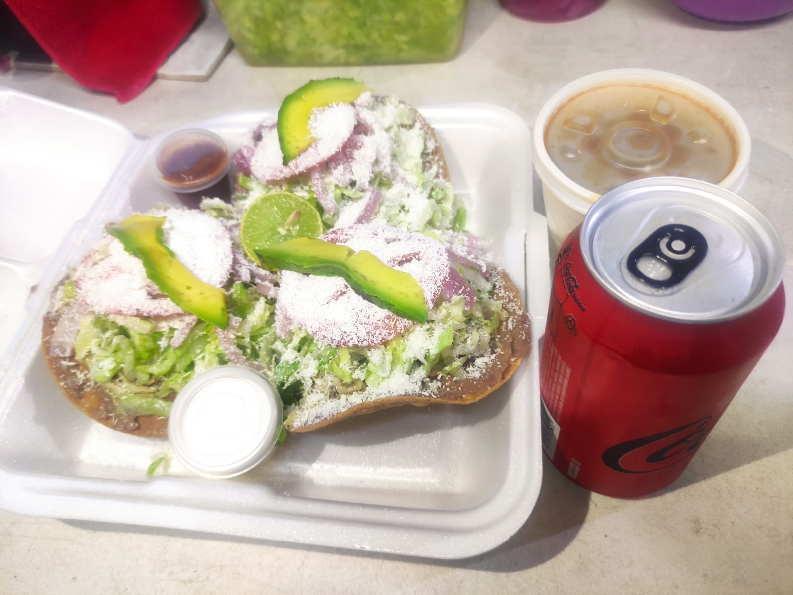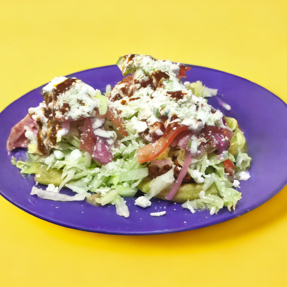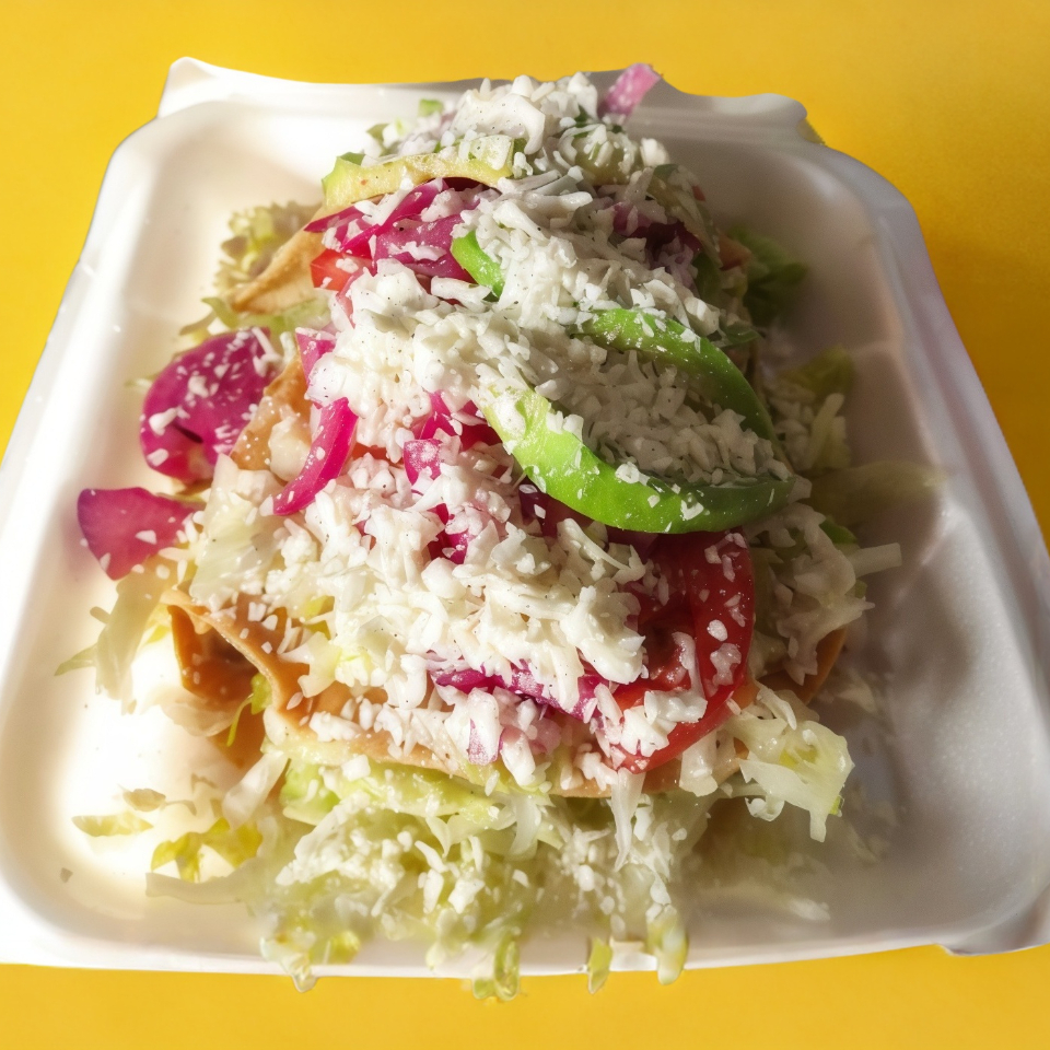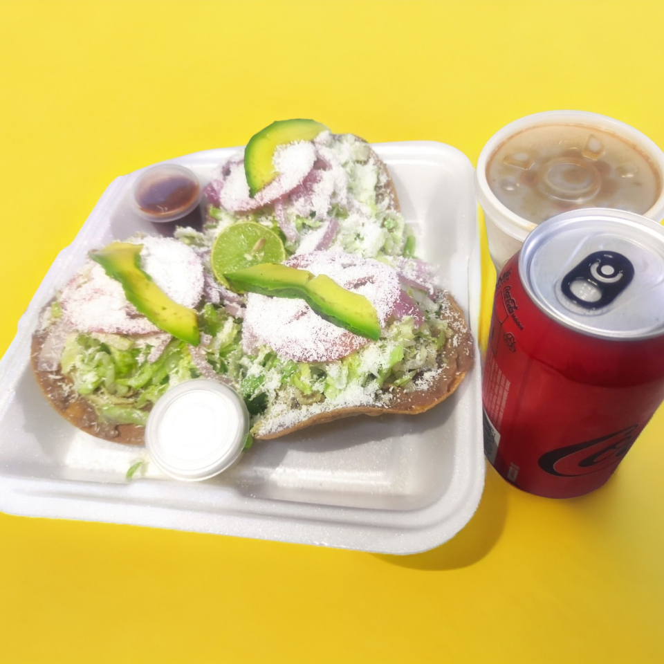 3 Tostadas ó Sopes con lechuga, tomate, cebolla morada, aguacate y queso rallado. Incluye su consomé, Salsa y Crema.