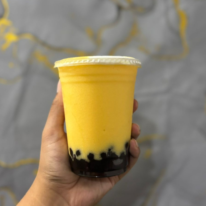 Mango, Hielo, Leche de preferencia o agua y tapioca