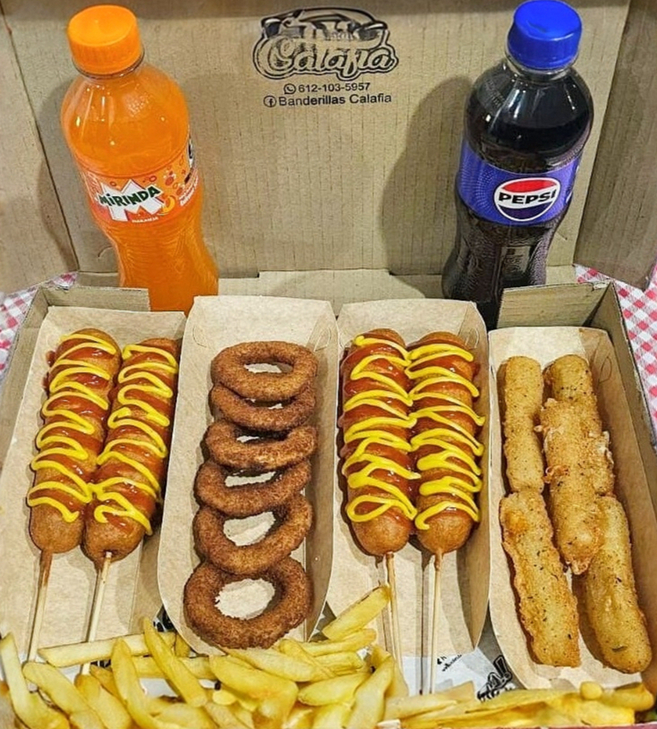 Combo de Banderilla Especial a elegir, Papas y Refresco