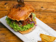 1/2 Sirloin con vegetales, tocino a la parrilla, BBQ de la casa y emulsión de jalapeño, acompañado de papas a la romero.